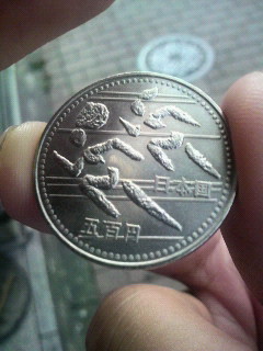 気づいたら、財布の中の5百円とおぼしき円盤が、見知ったものとまったく異なるデザインをしていておののいた。